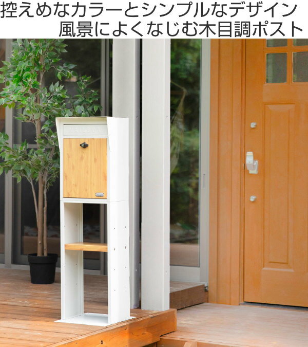 ポスト スタンドポスト 木目 GALVA ( 送料無料 郵便ポスト 郵便受け 新聞受け 置き型 スタンドタイプ 白 黒 木目調 棚付き ガーデン ナチュラル スタンド メールボックス ガーデニング 飾り棚 玄関 庭先 庭 おしゃれ )【39ショップ】