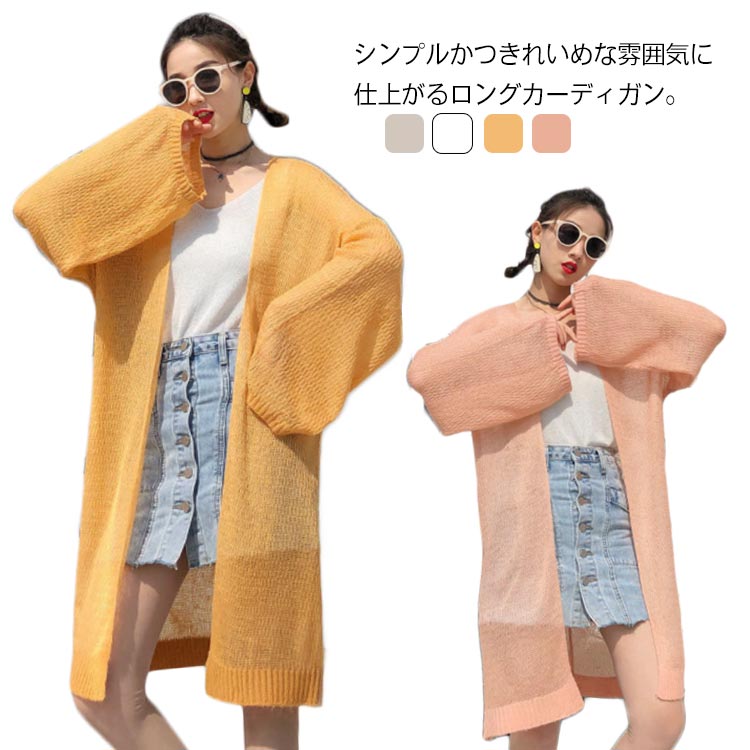 全6色 カーディガン レディース ロングカーディガン サマーニット 春夏 アウター カーデ 羽織 セーター 長袖 UVケア 冷房対策 体型カバー オフィス 薄手 ゆったり ブラック ホワイト グリーン ピンク ブルー ベージュ