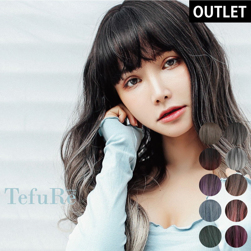 【アウトレット】ウィッグ ロング グラデーション カール 茶髪 青 赤 ピンク ブルー 白 シルバー 紫 オレンジ 緑 フルウィッグ かつら 自然 耐熱 ウイッグ 巻き髪 ウェーブ コスプレ 【MODEロングウェーブ】