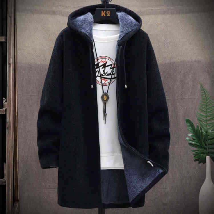 ロングカーディガン メンズ 裏起毛 秋冬服 裏ボア ジップアップ アウター ニットカーディガン フード付き 厚手 暖かい 防風 防寒 カジュアル 普段着
