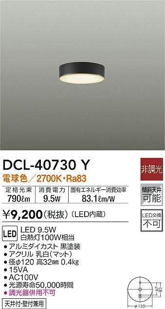カテゴリ:照明器具 大光電機 小型シーリング メーカー:大光電機 DAIKO 型番:DCL-40730Y / DCL40730Y ◎照明関連 【おすすめ Fケーブル】 (※適合に関しては事前にご確認ください) VVF1.6x2C VVF2.0x2C VVF1.6x3C VVF2.0x3C