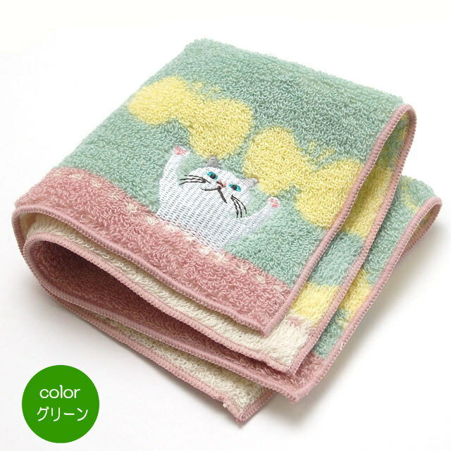 タオル ハンカチ 猫柄 チョウチョウターチャン フレンズヒル ネコ柄 綿100% コットン ハンドタオル 22×22cm グリーン/ピンク 猫 雑貨 小物 グッズ ねこ ネコ 猫柄 猫雑貨 猫グッズ 女性 レディース かわいい おしゃれ ギフト包装無料